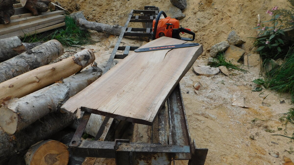Я давно вынашивал план по заготовке столярной доски своими силами. В этом году удалось раздобыть приличное количество круглого леса - береза, ольха, немного ясеня и прочих ценных пород древесины. Встал вопрос как это все перепилить на ровные доски нужной толщины. Исходя из своих возможностей, а именно - бензопила Карвер в 3 лошадиных силы и немного разного металла - швеллер, уголок и прочее, я решил попробовать создать какое-то подобие пилорамы. Сразу скажу что результатом я очень доволен, все работает как я и хотел, главное что теперь я могу своими силами и когда мне надо напилить досок длиной до 2.5 метра. Все подробности о моей самодельной бензопилораме в этом ролике, а у меня теперь новая задача - сушилка для доски.