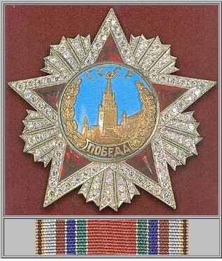 Орден “Победа” является высшим военным орденом. Им награждаются лица высшего командного состава Красной Армии за успешное проведение таких боевых операций в масштабе одного или нескольких фронтов, в результате которых в корне меняется обстановка в пользу Красной Армии.