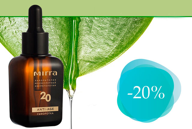 В этой статье - акции и выгодные предложения на косметику с натуральными ингредиентами российской марки MIRRA. 1. Anti-age сыворотка Уникальное масло из смолы мастикового дерева активирует белки молодости в клетках кожи. Стимулирует синтез и повышает плотность поддерживающих волокон в дерме, повышает их плотность и обеспечивает однородное распределение. Активирует процесс детоксикации клеток и восстанавливает клеточную активность. Кожа становится более плотной, объемной и упругой. Цена со скидкой: 798 р. 2. Набор «Мульти-уход» Осенняя программа для здоровья вашей кожи и волос! Недостаток в организме кальция и цинка, нарушение водно-солевого обмена неизбежно отражаются на состоянии и росте волос и ногтей. Курсовой прием БАД призван решить эти проблемы и будет особенно эффективен в случаях, когда нарушения проявляются на фоне нервных расстройств. В наборе: