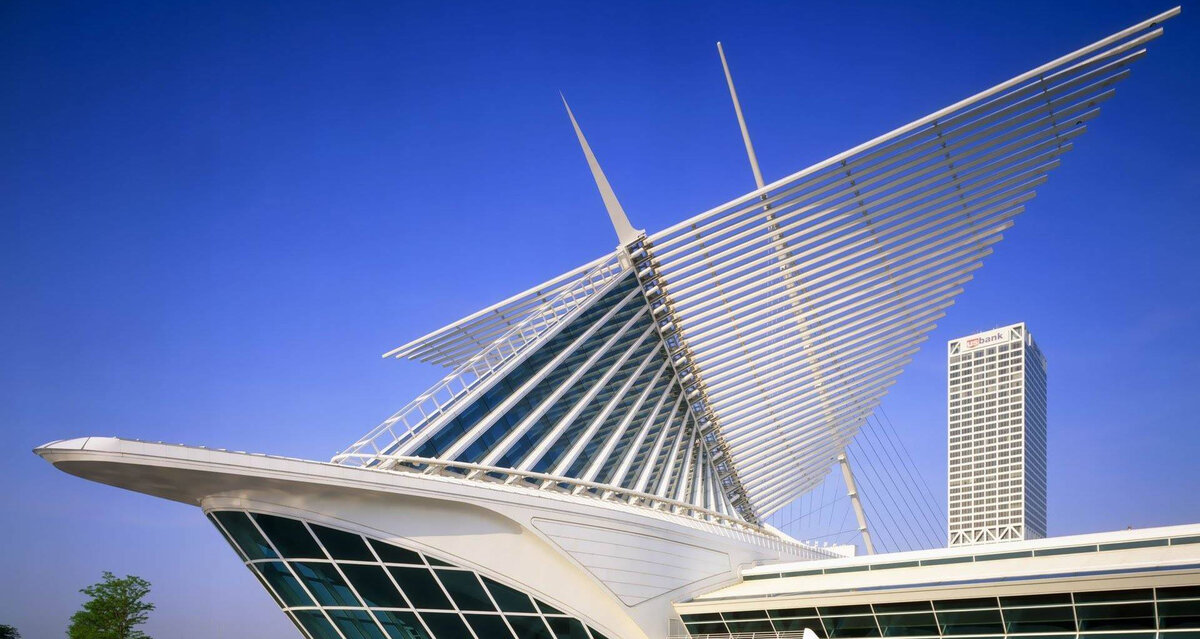 Архитектура - как принято считать, искусство монументальное и незыблемое. Но современные архитекторы ломают устоявшийся стереотип, создавая живые движущиеся дома. Какой будет архитектура будущего? 1. Дом-птица, Художественный музей Милуоки. Здание одного из павильонов Художественного музея Милуоки в США, принесло мировую известность автору этого творения архитектору Сантьяго Калатраве. Главная его особенность - огромные динамические крылья на крыше, которые могут при необходимости раскрываться, защищая от солнца экспонаты и посетителей музея. Конструкция получила название "Солнечный бриз". 2. Дышащий фасад. Институт арабского мира в Париже Динамика здания Института арабского мира в Париже не столько зрелищна, сколько практична. Фасад здания состоит из сложных движущихся панелей, которые реагируют на специальные датчики и расширяют или сужают ажурные отверстия-окна, в зависимости от освещения. Таким образом здание само поддерживает оптимальное количество естественного света в помещ