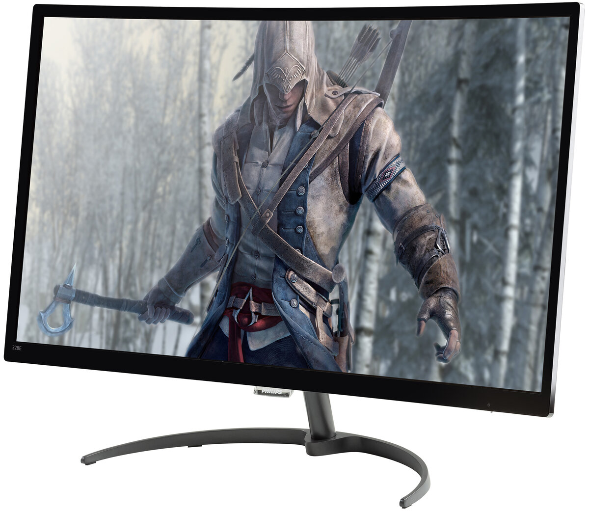 Несмотря на то, что современные мониторы имеют массу плюсов, многие не решаются приобретать большие дисплеи с разрешением 4К из-за непривычного масштаба: на огромном пространстве рабочего стола значки слишком мелкие, работать некомфортно. Компания Philips учла этот момент и выпустила монитор диагональю 31,5 дюйма с разрешением Full HD. Судя по заявленным спецификациям, Philips 328E подойдет для профессиональной работы с графикой и цветом. Но не будем спешить и рассмотрим все по порядку. Дизайн и конструкция Дизайн монитора современный, хотя безрамочным его можно назвать с натяжкой – окантовка экрана узкая, но заметная. Корпус – черный, глянцевый. Подставка выполнена в форме полумесяца – с коротким основанием и изогнутыми ножками. На нижней рамке находится логотип производителя, рядом с ним расположен светодиодный индикатор питания. Монитор оборудован внешним блоком питани