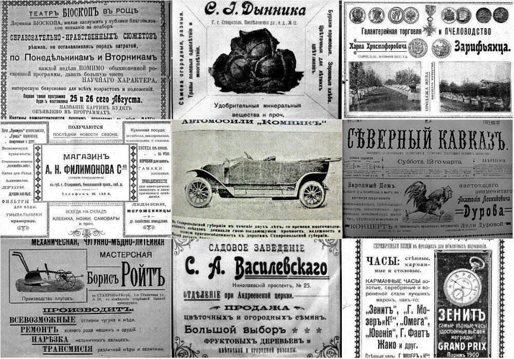 Перед вами небольшая подборка занятных рекламных объявлений, которыми был увешан дореволюционный Ставрополь. Давайте посмотрим, как завлекали клиентов местные предприниматели в начале XX века.