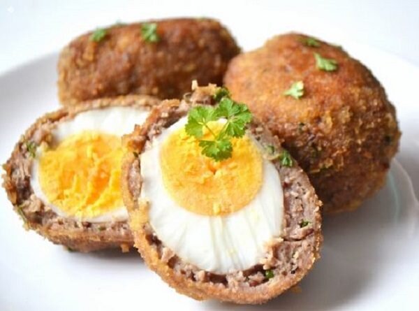 Мясные блюда традиционно присутствуют в нашем меню ежедневно. Каждая хозяйка знает, что можно быстро приготовить из говяжьего фарша. Сегодня я поделюсь с вами рецептом вкусными мясными клецками. Ингредиенты: Способ приготовления: Отварить, остудить и очистить 7 яиц. Лук и картошку очистить, натереть на мелкой тёрке, смешать с одним сырым яйцом, фаршем, солью и перцем. Хорошенько вымесить получившуюся массу и аккуратно распределить её на каждое варёное яйцо слоем в 1 см. В миске разбить 1 куриное яйцо и взбить его вилкой или венчиком. Обмакнуть каждую клёцку во взбитом яйце, запанировать в сухарях и выложить в предварительно смазанную маслом форму для запекания. Разогреть духовку до 180 градусов, готовить клёцки 30-35минут до зарумянивания. ПРИЯТНОГО АППЕТИТА! Если Вам понравился рецепт, ставьте лайк и подписывайтесь на мой канал в Яндекс.Дзен! А также в комментариях пишите, те продукты с которыми Вы бы хотели видеть рецепты.
