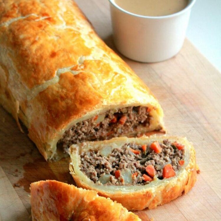 Говяжий фарш подходит не только для повседневного меню, из него можно приготовить блюда для праздничного стола, будь то день рождения, 8 марта или Новый год. Ингредиенты: Способ приготовления: Картофель и морковь очистить, нарезать крупными кубиками, как и сельдерей. Лук и чеснок почистить и мелко измельчить. Обжарить овощи на растительном масле 5-7 минут, остудить. Смешать фарш со слегка взбитым яйцом, овощной смесью, солью и перцем. Тесто разморозить, раскатать в прямоугольный пласт, уложить начинку по длинной стороне. Сформировать рулет, выложить на смазанный маслом противень и хорошенько смазать взбитым яйцом. Выпекать в предварительно разогретой до 180 градусов около часа. ПРИЯТНОГО АППЕТИТА! Если Вам понравился рецепт, ставьте лайк и подписывайтесь на мой канал в Яндекс.Дзен! А также в комментариях пишите, те продукты с которыми Вы бы хотели видеть рецепты.