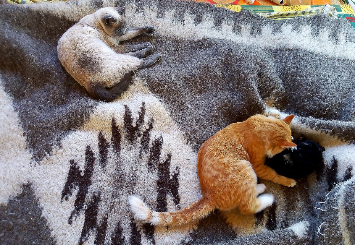 Во-первых, они начинают обрастать более плотной шерстью. У нашего Чино, например, уже видны «волны» на шкуре. Да и грива становится более густой (и вообще появляется). Во-вторых, звери едят с еще бОльшим аппетитом, чем обычно, нагуливая жирок на зиму: ночи-то ведь уже холодные. И самое приятное, с чем я столкнулась сегодня: кошки все больше времени проводят дома и стараются лечь поближе к чему-то теплому. А так как отопление мы еще не включили и камин не топим, то утром я проснулась под пледом в окружении сразу трех (!) кошек. И это было замечательное утро, свидетельствующее о скором приходе зимы (или хотя бы холодов). Из яркого сегодня еще то, что Ричи стал бегать галопом. Пока немного, на корде и без всадника, однако двигается он гораздо лучше. Надеюсь, что когда-нибудь мерин придет в ту форму, что я смогу хоть по чуть-чуть, но все-таки галопировать на нем. Несмотря н
