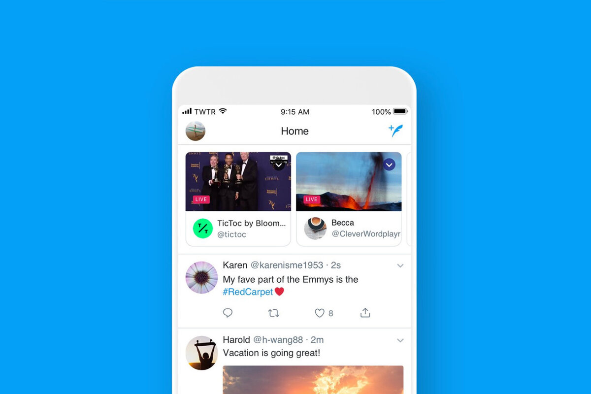 Twitter переместил прямые трансляции и простые трансляции, начатые аккаунтами, на которые Вы подписаны, в верхнюю часть хроники. Гигант социальных сетей включил новую функцию в свои приложения для iOS и Android на этой неделе. Среди обновлений, Twitter сообщил, что теперь также поддерживает прямые аудио-трансляции, также они доступны в Periscope. В прошлом месяце Twitter прекратил выпуск своего приложения для iOS 9 и более поздних версий, которое, по собственным данным Apple, по-прежнему содержит около 5 процентов всех пользователей iPhone и iPad.