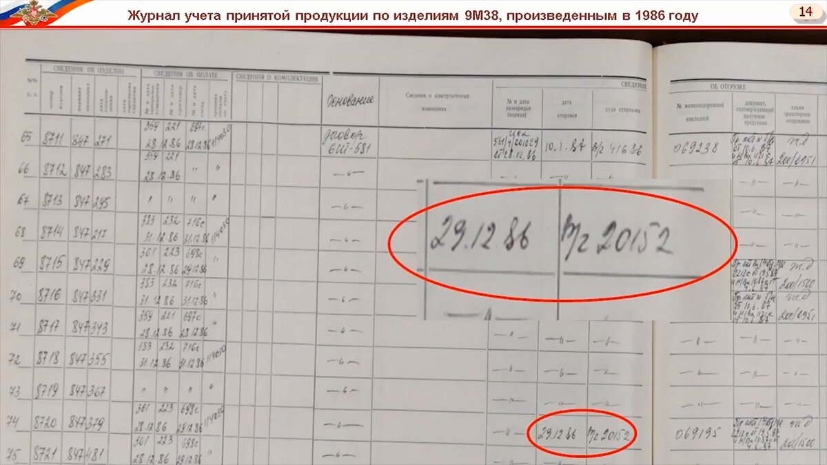 Сбившая "Боинг-777" в 2014 году на Донбассе ракета была изготовлена в 1986 году на Долгопрудненском машиностроительном производственном объединении. А 29 декабря 1986 года была направлена по железной дороге в воинскую часть 20152, которая дислоцировалась в то время в г. Стрый Львовской области, УССР. С тех пор ракета территорию УССР, а позже Украины не покидала и с 1991 года была на вооружении ВСУ. Такое заявление сделал Николай Паршин (1962 г.р.) - начальник Главного ракетно-артиллерийского управления Вооружённых сил России, генерал-лейтенант, после опубликования рассекреченных документов с грифом "совершенно секретно". Теперь нет никаких тайн. Сбившая "Боинг-777" ракета точно украинская. Что и требовалось доказать.