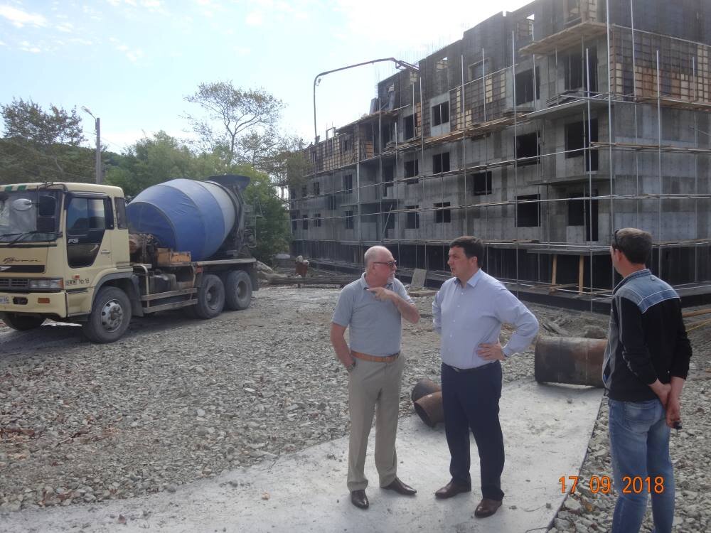 В рамках реализации приоритетного проекта «Формирование комфортной городской среды» в Горнозаводске полным ходом ведутся работы по благоустройству села. На эти цели Невельскому городскому округу из областного бюджета в 2018 году были выделены денежные средства в размере 33,5 млн. рублей. Текущий и капитальный ремонт дорог, благоустройство дворов, озеленение, уличное освещение - вот неполный перечень проводимых работ. 17 сентября мэр Алексей Шабельник посетил в с Горнозаводске объекты строительства, благоустройства и капитального ремонта. В этом году началось строительство двух пятиэтажных домов. Строительство ведется в рамках мероприятий по переселению граждан из аварийного жилищного фонда государственной программы Сахалинской области «Обеспечение населения Сахалинской области качественным жильем на 2014-2020 годы». И уже в 2019 году 85 семей смогут получить ключи от новых квартир. В ходе осмотра работ по замене внутридомовых коммуникаций и ремонта крыши в многоквартирном доме по ул
