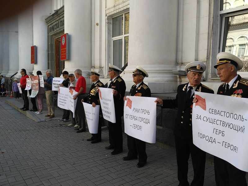 Более десятка советских офицеров и членов КПРФ вышли с плакатами перед началом заседания городского парламента. Утром во вторник перед началом первого в осенней сессии 2018 года заседания заксобрания Севастополя под стенами городского парламента состоялся пикет в поддержку советского варианта герба города-героя и против пенсионной реформы, передает корреспондент ForPost. Чуть более десятка севастопольцев в форме офицеров ЧФ, а также с символикой КПРФ держали в руках плакаты: «Севастополь за существующий герб города-героя», «Не хотим умирать на работе» и т.п. «Заявка на проведения пикета была дана Союзом советских офицеров в поддержку советского варианта герба Севастополя – это очень болезненная тема. Пригласили и компартию поучаствовать в этом пикете, мы взяли более актуальную тему – пенсионную реформу», - пояснил ForPost участник пикета, второй секретарь севастопольского отделения КПРФ Роман Кияшко. Он напомнил, что 24 сентября госдума РФ будет рассматривать проект пенс
