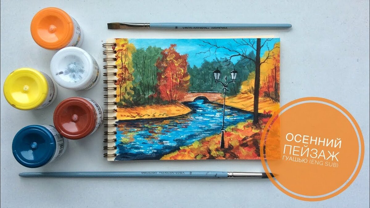 Осенний пейзаж гуашью. Пошаговый видео мастер-класс