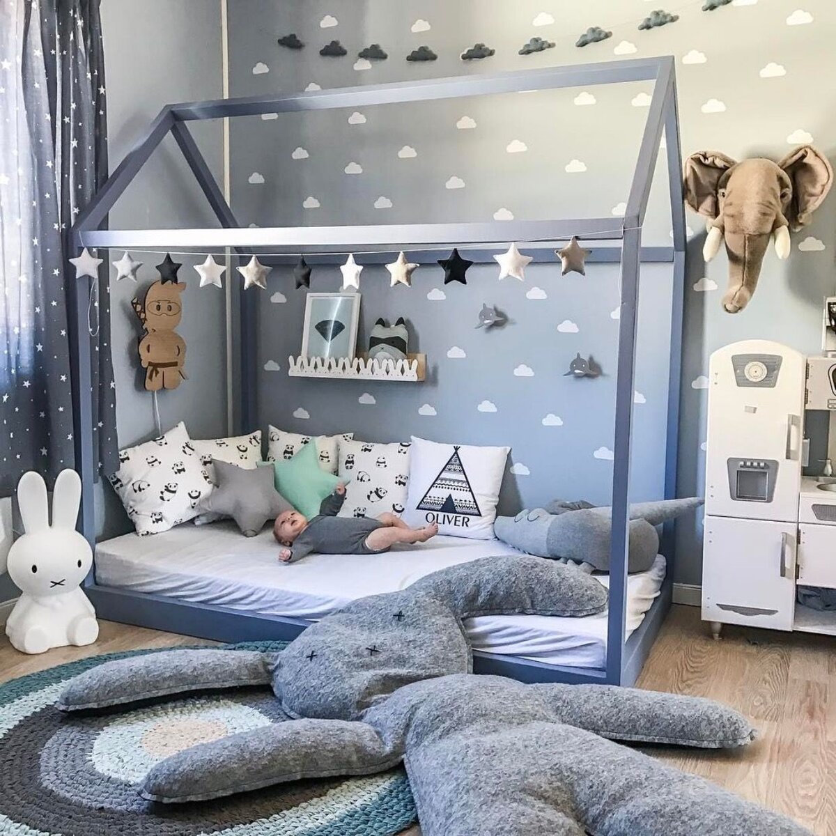 Если вы выбираете краску, то ищите на упаковке маркировку «для детских комнат» или слово KID в названии. Как правило, это краски на водной основе, абсолютно экологичные и нетоксичные. А самое главное — очень удобные в использовании: наносятся быстро практически на любые поверхности (штукатурка, шпатлевка, старая краска, бетон, ДВП, гипсокартон, обои), не пахнут и мгновенно сохнут. Красить и перекрашивать стены водными красками можно сколь угодно часто!
