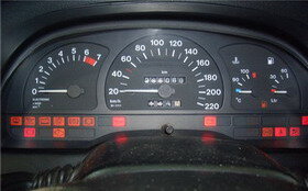 На что следует обратить внимание при включении зажигания - все автолюбители обязаны знать предназначение каждой лампочки на приборной панели и обращать на них внимание при пуске двигателя. Приборная панель Прежде всего, внимательно рассмотрите приборную панель, а также проверьте работоспособность имеющихся на ней индикаторов. На современных машинах на панели часто присутствуют индикаторы разных диагностических систем, при этом продавцы либо не знают, либо умышленно дезинформируют покупателей о назначении того или иного загорающегося "огонька". При том, что все это может служить сигналом неисправности лямбда-зонда, бензонасоса высокого давления, тормозной системы либо какой-нибудь другой дорогостоящей в прямом и переносном смысле "штуковины". Включите только зажигание, не запуская при этом двигатель На приборном щитке загорится множество красных лампочек, при этом обязательно должны светиться: лампочка аварийного давления в масле (если давление масла опускается ниже 0,3 кг/ см2), ламп