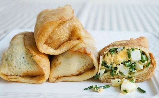 Закусочные блинчики с зеленым луком и яйцом. Бюджетный вариант для праздничного стола и на каждый день. Одинаково вкусные как в холодном, так и в горячем виде... Ингредиенты: молоко или вода - 2 стакана мука - 1 стакан яйца - 2 шт. сахар - 1 ст. ложка соль - щепотка растительное масло - 3 ст. ложки разрыхлитель - 1/2 чайной ложки (для тех кто боится, что блинчики будут без дырок) Для начинки: яйца - 4-5 шт. зеленый лук - 1 пучок масло сливочное - 2 ст. ложки Для теста яйца взбить венчиком или вилкой с сахаром и солью. Влить половину жидкости, добавить всю муку и разрыхлитель (можно и без него). Тесто получится как на оладьи. Вылить оставшуюся жидкость, вымешать тесто и добавить растительное масло. Выпечь блины, не сильно зажаривая вторую сторону. Для начинки зеленый лук и яйца мелко порезать. Добавить растопленное сливочное масло. Посолить и поперчить. Как нафаршировать блины дело вашей фантазии))) - свернуть блинчики конвертом, завернуть рулетом, в виде тонких трубочек и т.д. Так ка