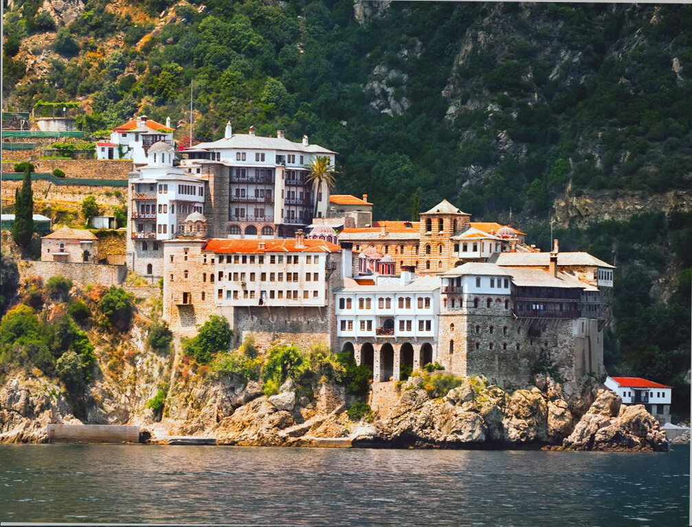 Святое место - гора Афон, монашеское государство на полуострове Халкидики и обитель Пресвятой Богородицы. О Запрете: К сожалению уже сотни лет на святую землю запрещается ступать женщинам. Но как же быть ? Ведь это место хранит огромное количество чудотворных икон, реликвий связанных с земной жизнью Божией Матери, одной из важнейших является Пояс Богородицы, сплетенный Ею при земной жизни. Запрет законодательно принят еще в IX в. по распоряжению византийского императора Михаила Палеолога. Предание гласит. Византийская царевна Плакидия, дочь императора Феодосия, прибыла на Афон и направилась к одному из храмов. Но перед входом услышала голос Богородицы, повелевший ей немедленно покинуть монашеский полуостров: «Отныне ни одна женщина не должна вступать на эту землю». По прошествии десяти веков сербская царевна Маро, привезшая щедрые дары для монастырей, была остановлена ангелом и велено Ей было вернуться на корабль. Путь к Святыням: Мы расскажем о том, как женщины могут не нарушая пра