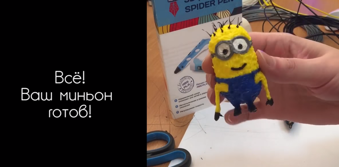 Наша команда специально записала данный видео ролик, чтобы все желающие могли сделать самостоятельно своего собственного миньона. В этом видео рассказано как сделать миньона с помощью 3D ручки Spider Pen PLUS.
