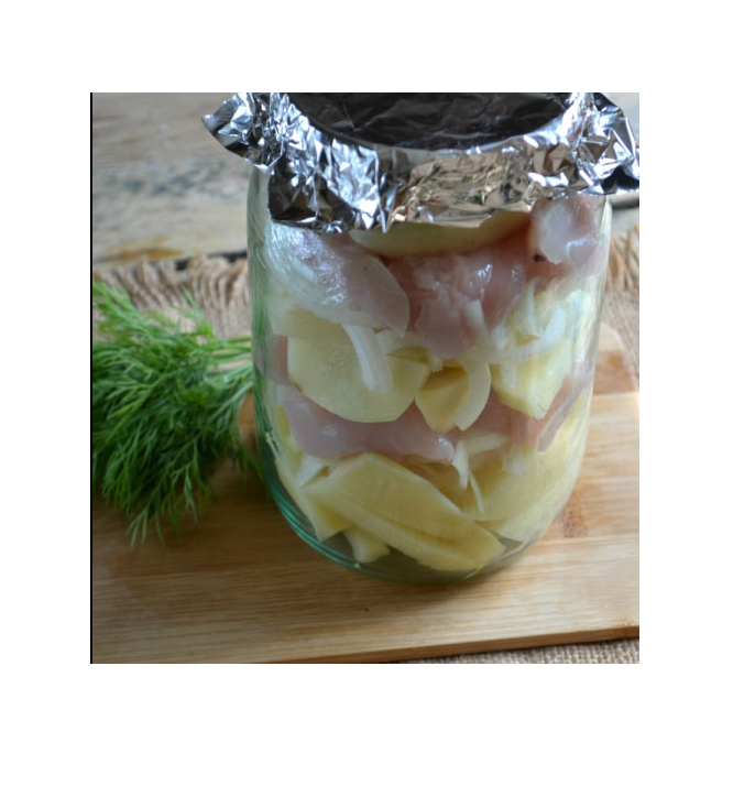 Вот уж точно рецепт из ленивой кухни! Разве что банку придется потом отмывать, а так рецептик что надо - и сочно, и нежно, и вкусно... Главное соблюдать правила безопасности))) Ингредиенты : курица (любые части) лук репчатый картофель соль, перец специи, лавровый лист Для приготовления курицы в банке можно и нужно использовать абсолютно любые части курицы. Однако, если одновременно готовится и грудка, и окорочка, то грудку лучше положить вниз, чтобы пропиталась выделившимся соком. Овощи подойдут тоже любые. Помимо картофеля и лука можно использовать морковь, сладкий перец, помидоры, баклажаны, капусту и т.д. Перекладывать мясо и овощи можно слоями или все смешать в отдельной миске и переложить в банку. Длительность приготовления 1,5 - 2 часа. Самые главные правила: Банка должна быть целой, без трещин и сколов. Загружать банку не стоит под самый край, оставьте хотя бы 2-3 см от края. Банку ставим только в холодную духовку, банка должна нагреваться постепенно. Если готовим грудку, не