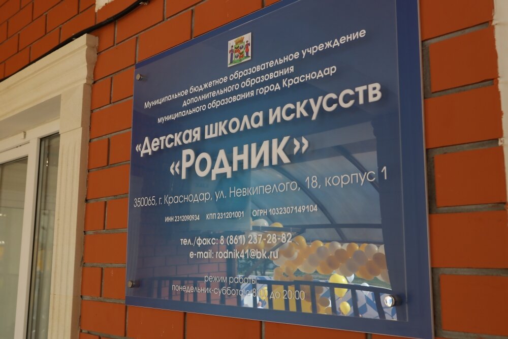 Учебный корпус площадью 1,5 тыс. кв. м расположился на ул. им. Невкипелова, 18 к. 1 во встроенно-пристроенном помещении жилого дома. В нём откроются два отделения: художественное и раннего развития детей. Заниматься здесь будут более 600 учеников. В открытии нового корпуса принял участие глава города Евгений Первышов. — Ко Дню города, юбилею Краснодара, жители одного из самых крупных наших микрорайонов, Гидростроителей, получают замечательный подарок — новое здание детской школы искусств «Родник», в котором будут заниматься более 600 мальчишек и девчонок. В прежнем корпусе школы ещё некоторое время будут работать музыкальное и хореографическое отделения, но вскоре они тоже переедут в новое помещение. Фактически школа искусств станет в два раза больше, чем была. А в ее бывшем здании, которое изначально было детским садом, мы сделаем капитальный ремонт, откроем полноценный детсад на 250–280 мест. Таким образом, при поддержке губернатора Краснодарского края мы поступательно решаем одну