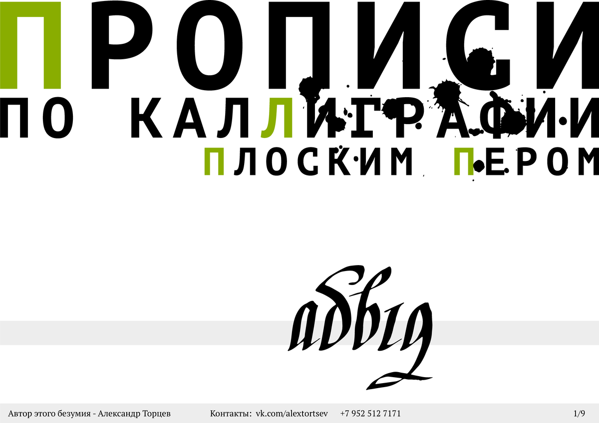 Увлекаюсь каллиграфией. И ещё немного вёрсткой буклетов. И из всего этого родились прописи по каллиграфии :) Это моя первая подобная работа. Можно сказать "проба пера" Постарался написать немного полезной информации. Но эта информация заняла большую часть прописей. Не уверен что эта информация так уж нужна в прописях. Если есть мысли по этому поводу - напишите мне об этом. Исходя из ваших замечаний, буду корректировать следующие прописи. Планирую делать прописи для кисти. Описание - как пишутся основные элементы шрифта. Вот так выглядят надписи, сделанные этим шрифтом. Сами прописи. В конце прописей есть разлиновки. Для пера Pilot Parallel Pen 3.8mm. Но могу сделать и на заказ, под любую другую толщину пера. Если вам интересен данный материал, можете приобрести его бесплатно у меня. Для этого достаточно написать мне сообщение. Ссылка на мой профиль в ВК