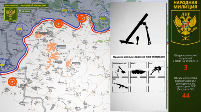 19 сентября 2018 - Обстановка на линии соприкосновения за сутки | Карта обстрелов