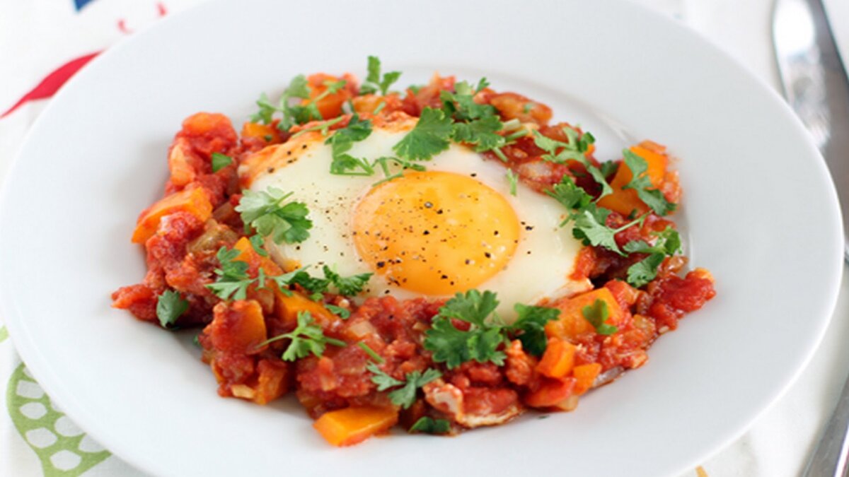 Шакшука - это блюдо из яиц, жаренных в соусе из помидоров, острого перца, лукa и приправ, входит в кухню Израиля, большинства арабских стран и Азербайджана. Подаётся на завтрак с хлебом или питой Ингредиенты: