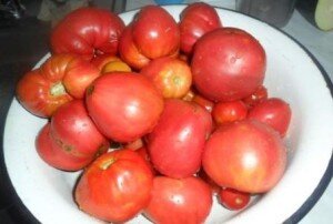 Пропустите помидоры через мясорубку, также поступите и с чесноком.