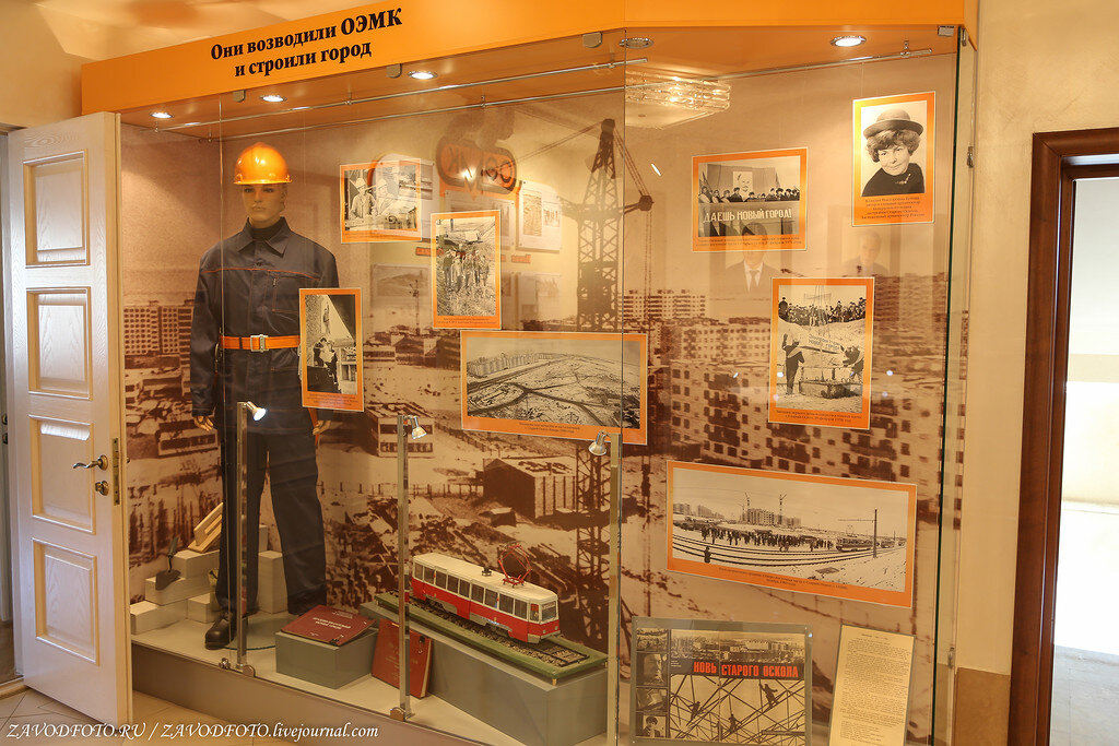 В городе Старый Оскол Белгородской области находится Оскольский электрометаллургический комбинат (ОЭМК). Это единственное в России металлургическое предприятие полного цикла, где реализованы технология прямого восстановления железа и плавка в электропечах, позволяющие получать металл, практически свободный от вредных примесей и остаточных элементов. Про этого металлургического монстра у меня уже был пост, а сегодня я хочу рассказать про их музей, который прославляет тех людей, кто в своё время строил этот завод, развивал и поднял до сегодняшних высот. Музей ОЭМК носит имя Заслуженного металлурга Российской Федерации Алексея Алексеевича Угарова, бывшего генерального директора ОЭМК. Музей был торжественно открыт 26 декабря 2012 года и находится он в здании заводоуправления Оскольского электрометаллургического комбината. Здесь посетители музея могут увидеть документы о создании комбината, технологическую схему производства, портреты и личные вещи всех директоров и главных инженеров п