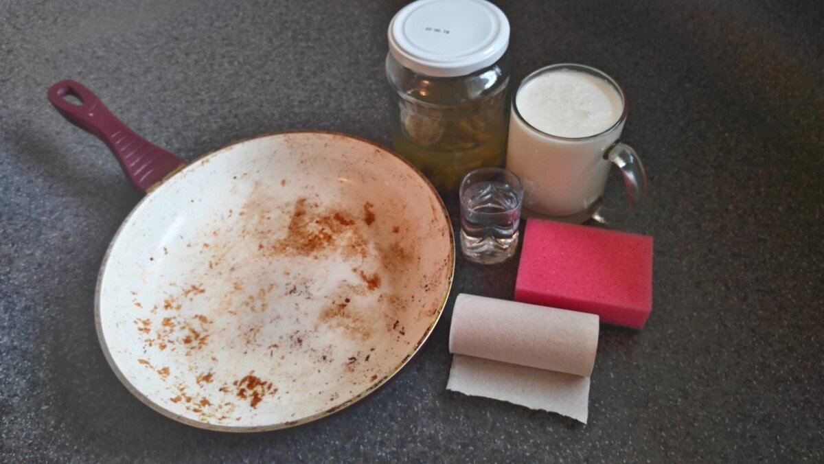 Очищение керамической сковороды с помощью простокваши