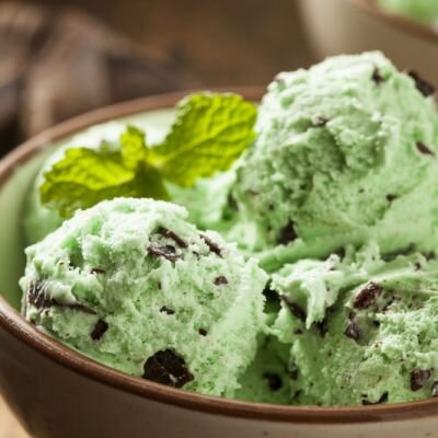 Темный шоколад (мелко порубленный) — 115 г Способ приготовления: 1. В среднюю кастрюлю выливаем молоко, 200 мл сливок и добавляем листики мяты. Ставим на средний огонь, ждем, когда смесь слегка начнет пузыриться (примерно 5 минут). До кипения не доводим! Снимаем с огня и остужаем около 15 минут