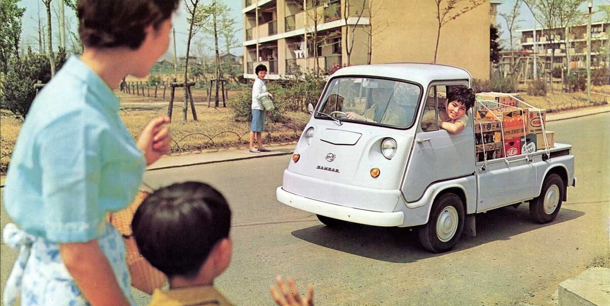 После Второй Мировой войны в Японии не хватало топлива для автомобилей. Поэтому был принят закон, снимавший налоговое обременение с легковых автомобилей, длина которых не превышала 3600 мм, а расход топлива составлял не более 3,4л/100км. благодаря строгому закону появился этот легендарный японский автомобиль. В 61 году прошлого века в Токио дебютировал компактный грузовой автомобиль Sambar Truck. В качестве его основы выступала платформа от Subaru 360. Внутри находился 2-цилиндровый мотор объёмом 354 куб. см и мощностью всего 18 л. с. В салоне этого автомобиля комфортно себя чувствовать могли и водитель, и его пассажиры. В отличие от своих конкурентов, Truck обладал низким полом, благодаря чему можно было удобно разместить ноги, а также большим багажным отсеком, благодаря чему можно было перевозить крупногабаритный груз. Вслед за автомобилем Sambar Truck в этом же году был выпущен фургон Light Van, который был предназначен не только для коммерческого использования, но и отдыха. Уника