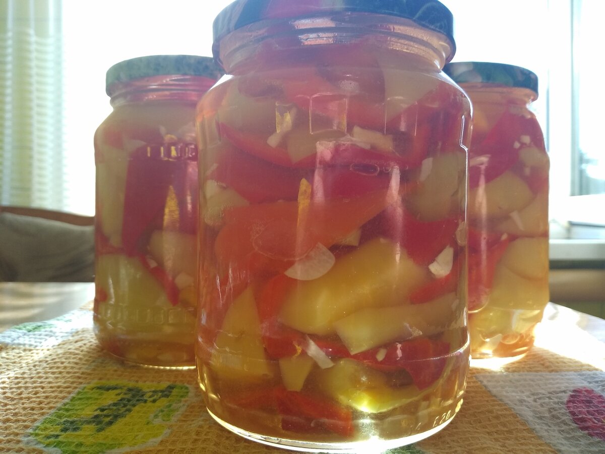 Соль – 2 столовые ложки. Приготовление: нарежьте перец удобными дольками, сложите его в посуду, добавьте туда мелко нарезанный чеснок и остальные ингредиенты. Оставьте смесь на 8-10 часов. Затем разложите по банкам, стерилизуйте 15 минут (пол литровые), закатайте и закутайте. Откроете баночку зимой и почувствуете аромат летнего сада. Приятного аппетита!