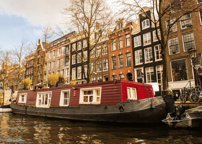 В Амстердаме около 2500 домов на воде, большая часть из которых расположена в центре города на каналах, многим из них уже более 100 лет. Небольшие лодки и баржи переоборудованные под жилье начали активно использоваться сразу второй мировой войны, чтобы быстро решить “жилищный вопрос” во всех городах, где каналов чуть ли не больше чем дорог. В 1960-х и 1970-х годах стали появляться более современные плавучие дома. Этот тип плавучего дома, известный как woonark построен на плавучем понтоне и уже совсем не похож на лодку. Плавучие дома в Амстердаме постоянно привязаны к конкретному адресу. Специальный пермит (называется ligplaats) дает право владельцу плавучего дома пришвартовать свой дом в определенном месте и только там. За очень редким исключение получить новое разрешение на постоянную швартовку невозможно. Выделение новых мест для швартовки новых домов на воде заморожено последние 30-40 лет. Кстати, дома на воде в центре города нельзя перекрашивать, менять материалы отделки и вообще