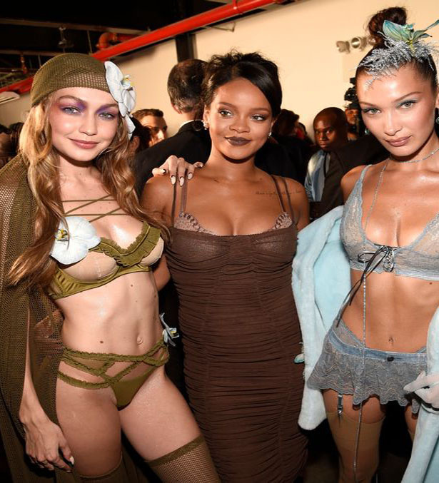 В бельгийском шоу NYFW от Rihanna были представлены беременные модели, Белла и Гиги Хадид и много обнаженной кожи В своем первом модельном показе певица сделала акцент на инклюзивность. Рианна получила высокие оценки после демонстрации собственной линейки нижнего белья на Неделе моды в Нью-Йорке. На сочно зеленом подиуме были представлены разнообразные модели и танцоры, демонстрирующие линию Рианны « Savage x Fenty», которая была запущена в мае. На демонстрации также приняли участие две беременные женщины, в том числе муза Рианны Слик Вудс. Сестры Белла и Гиги Хадид также были среди известных моделей, участвующих в шоу. Когда шоу закончилось, все модели объединились, прежде чем Рианна предстала перед огромными аплодисментами восхищенной толпы. Один фанат прокомментировал: « На этом показе Рианна представила наши разнообразие, хореографию и представление всех типов тел, и всё это она сделала в свой первый показ». Другой фанат отметил, что Рианна «изменила правила игры» своим шоу. Они п
