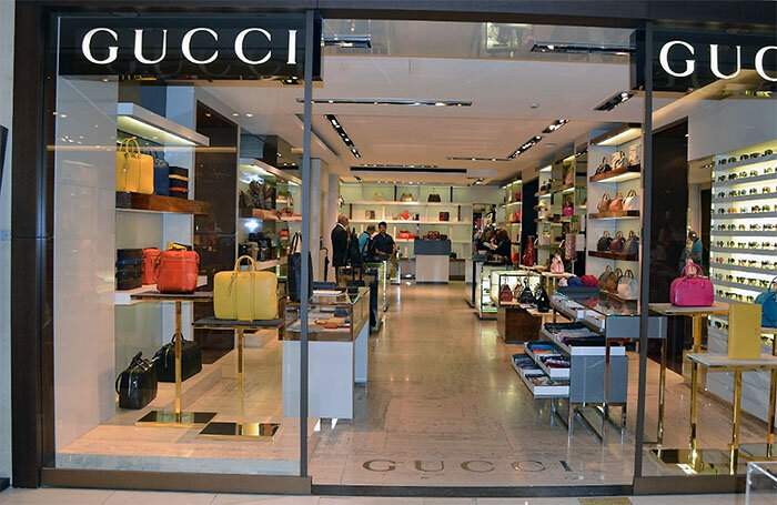 Акцентное освещение предназначено для сосредоточения внимания покупателя на товаре, представленном на витрине или торговых стеллажах. Оно строится с применением разных типов светильников и их комбинации. Это могут быть трековые светильники, дающие направленный свет, это могут быть равномерно подсвечиваемые панели и т.д. Светотехнические параметры светильников подбираются в соответствии с пожеланиями заказчика. Здесь предоставляется большой простор для фантазии дизайнеров и архитекторов. Вот, например, освещение салона Гуччи в ЦУМе, в Москве. Карданные акцентные светильники направлены на витрины с товаром. Освещение зала так же осуществляется с помощью спотов, но посмотрите, как они сориентированы. Каждая витрина подсвечена индивидуально. Каждый светильник направлен в сторону либо витрины, либо манекена. Освещение зала получается приглушенным, но в то же время вполне достаточным, чтобы разглядеть представленные предметы и выбрать лучшее. Так же хорошо можно видеть контровое освещен