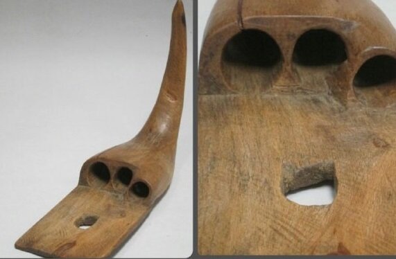 Такой ручной инструмент использовался в Шотландии, в 18-19 веках в сельском хозяйстве. Эта "лапа" надевалась на левую руку во время сбора урожая ячменя или овса, а в правой руке крестьянина был, конечно же, серп. Для чего же было это приспособление? Эта штука выдалбливалась из цельного куска дерева, в ней делалось три отверстия под пальцы: средний, безымянный и мизинец. Хотя были варианты и на четыре пальца, это как кому было удобнее. В таком деревянном чехле они были защищены от возможности случайно поранить себя во время уборки, а также от колючего чертополоха, символа Шотландии, которого было достаточно на полях этого региона. Левой рукой собирали вместе и отодвигали стебли во время среза - для это был тонкий и острый кончик этого полезного приспособления. Большим же пальцем, который оставался свободным, фиксировали пучок колосков пшеницы, ячменя или овса. Также на этом приспособлении есть сквозное отверстие, которое использовалось для крепления на поясе, чтобы не потерять. Ка
