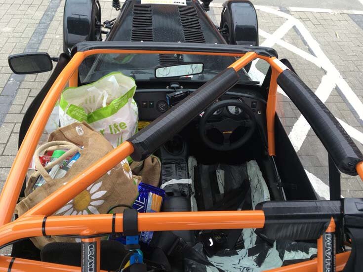 Что происходит с гоночным автомобилем, когда гонок нет? Подавляющее большинство гонщиков доставляют свои авто на прицепах, и в этом есть смысл. Ко многим трекам путь не близкий, да и с собой нужно взять много инструментов и снаряжения. А вот у автора данной статьи нет ни трейлера, ни авто, которое бы тянуло этот трейлер. Поэтому гонщик решил провести необычный эксперимент и использовать свой гоночный автомобиль в повседневной жизни. Машина совершила несколько поездок в аэропорт, супермаркет, местный и во многие другие места. Итак, вот что удалось узнать в процессе… Это довольно практичный автомобиль Большинство из этих поездок потребовало загрузки большого количества вещей в автомобиль, в котором, на самом деле, нет места для багажа. Несомненно, присутствует что-то смутно похожее на «багажник» сзади, но там не так много места, которое и так занято огнетушителем. Единственный возможный вариант — использовать пассажирское сиденье и пространство для ног, и вы будете поражены