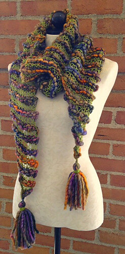 Как вам этот восхитительный платок? Я на него давно заглядываюсь, даже применяла этот прием чередования толстой и тонкой пряжи. Описание бесплатное (для тех, кто силен в английском или кому не лень переводить со словарем), Я, конечно, в буквах ничего не поняла, но это обыкновенный бактус, вязание которого начинается с 4 петель, затем в конце каждого лицевого ряда выполняется прибавка (центральная часть по желанию - можно несколько рядов провязать ровно, можно сразу выполнять в конце ряда убавки). Пряжей каждой толщины вяжем по два ряда. Можно и по другой простой схеме так связать, главное здесь - чередование очень толстой и достаточно тонкой пряжи.