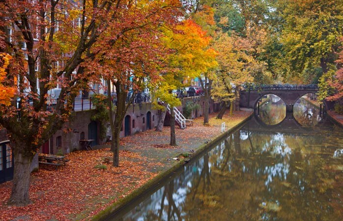 С приходом осени преображаются каналы старого доброго Утрехта: их украшает желтая, красная, оранжевая листва, которая отражается в воде, и та тоже становится разноцветной. Утрехтские каналы XII века с их причалами и подвалами — единственные в своем роде. Причалы были построены, чтобы создать что-то вроде внутренней городской гавани и чтобы суда могли швартоваться и выгружать товар непосредственно в подвалы, вдоль которых были проложены пешеходные дорожки.