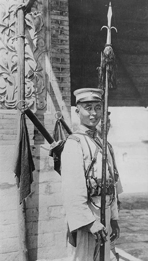 На снимке ниже - китайский солдат с "большим мечом" дадао. Дадао - настоящий символ воина Китая, он массово применялся в эпоху китайской Гражданской войны в начале XX века, потом - против японских захватчиков, и т.д. И применялся с успехом! Дадао производились массово на оружейных заводах, для дадао написали целую технику современного боя, включающую 8 простых приемов - против винтовки со штыком, против меча, против кавалериста, да мало ли... Почему только 8? А в бою, знаете ли, больше и не надо. Армейское фехтование - эт вам не дестреза.