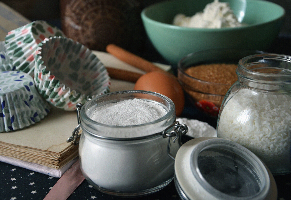 Ингредиенты: 1) мука - 200г 2) сахар - 100г (я использую коричневый) 3) молоко - 100 мл (слегка теплое) 4) яйцо - 1 шт 5) сливочное масло - 100г (размягченное) 6) разрыхлитель - 1 чайная ложка 7) наполнитель (я использую кокосовую стружку, можно и без) - по вкусу 8) ванилин и соль - по щепотке Приготовление: Подготовить две ёмкости. Яйцо взбить в пену, продолжая взбивать добавить ванилин и размягченное сливочное масло, вымешать все до однородной массы. Добавить чуть теплое молоко, перемешать. В другую ёмкость просеять муку с разрыхлителем. Добавить сахар и соль, перемешать. Высыпать наполнитель, в моем случае - коксовую стружку. Перемешать. Мокрые ингредиенты добавить к сухим, все соединить в однородную массу при помощи лопатки. Разогреть духовку до 180 градусов. Выложить тесто в формочки, заполняя их на 2/3 части. Выпекать около 25 минут, в зависимости от вашей духовки. Готовность проверить зубочисткой. Приятного аппетита!
