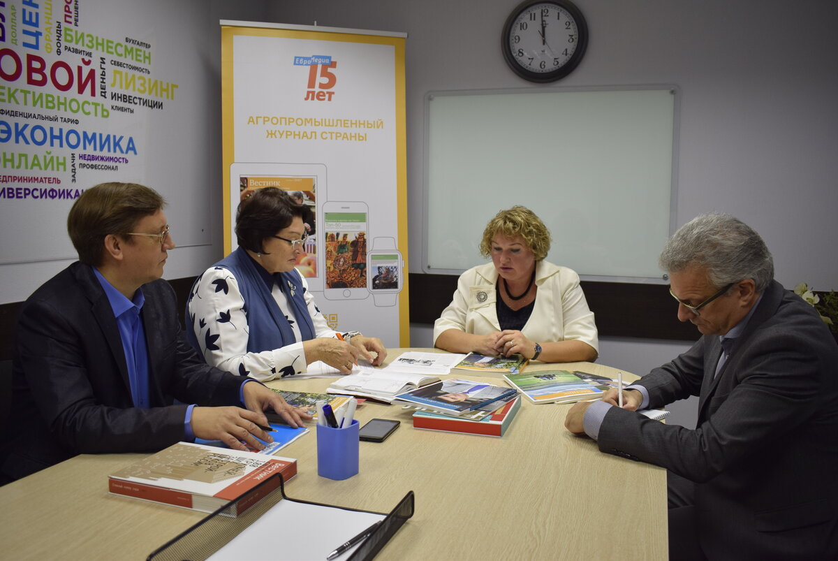 В московском представительстве МИД «ЕвроМедиа» состоялся брифинг с председателем Региональной общественной организации «Территориальный профессиональный союз работников агропромышленного комплекса города Москвы» Александрой Пшеничниковой. В ходе встречи поговорили о возрастающей роли профсоюзов в АПК. Итоги встречи и актуальные новости о значении профсоюзов в сфере агропромышленного комплекса читайте в следующем номере журнала «Вестник агропромышленного комплекса». Напомним, в редакции полным ходом идет подготовка номера ко Дню работника сельского хозяйства и перерабатывающей промышленности и к 20-й Российской агропромышленной выставке «Золотая осень» в Москве. Следите за новостями.