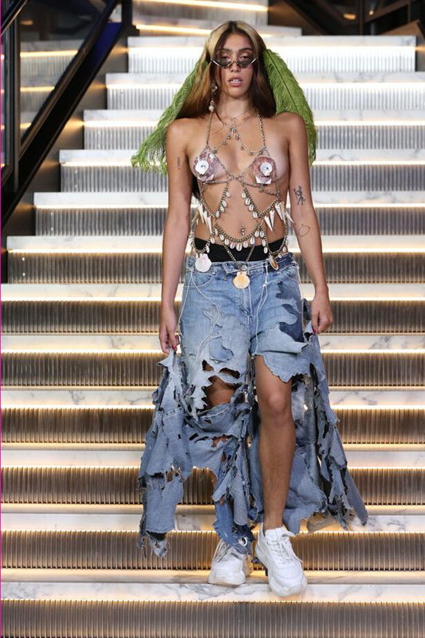 В рамках недели моды старшая дочь Мадонны сделала перерыв в учебе, дебютировав в Нью-Йоркском показе. Лурдес Леон в стиле своей матери стала центром внимания, когда ступила на дорожку на Нью-йоркской неделе моды. 21-летняя модель уверенно шла по дорожке, одетая в крохотный бюстгальтер из ракушек и цепей. Лурдес, обнажая свои трусики, также с гордостью продемонстрировала свою неэпилированную ногу, видневшуюся через короткие изрезанные джинсы. И она явно рада своему дебюту, поскольку поделилась событием в своей страннице инстаграм Лурдес лично обратилась к дизайнеру Рио Урибе, изъявив желание участвовать на показе,как пишет Vogue. Лурдес уже давно гордится своими естественными волосами на теле, как и ее знаменитая мама. В канун Нового года Мадонна сфотографировалась со своей дочерью, которая обняла ее руками, чтобы продемонстрировать всему миру свои небритые подмышки. Так же, как и у Лоудес, у Мадоны есть пять других детей, 17-летняя Рокко Ричи, у которой она была с бывшим мужем Гаем