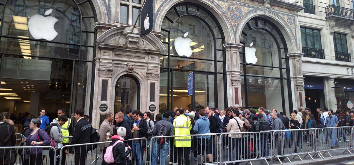 После презентации новый iphone , как и всегда выстроилась огромная очередь в магазин , для тех кто хочет купить новый гаджет.