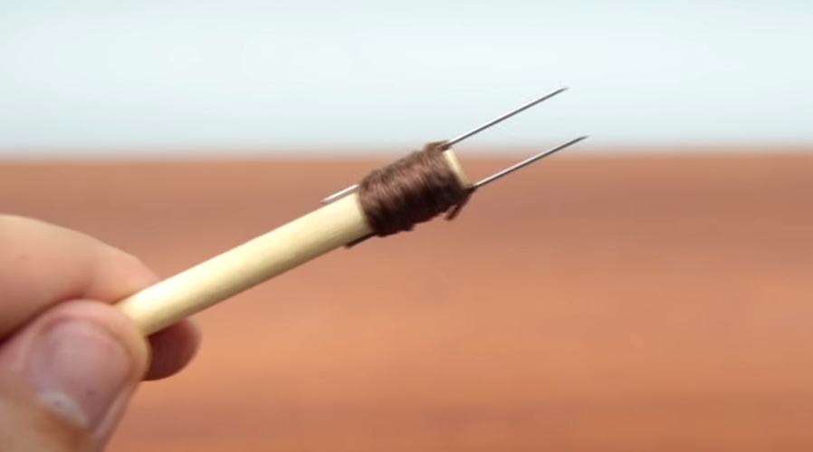 Всем привет, сегодня я вам расскажу о гениальной самоделке! Для данной самоделке нам понадобится : 1. Иголки от шприца(отделяем плоскогубцами пластиковую часть). 2. Нитка. 3. Карандаш. 4. Батарейка крона. 5. Переходник для кроны. 6. Кусок термоусадочной трубки. Начало : Берем карандаш, и закрепляем на нем две иголки как показано ниже! С помощью плоскогубцев согните иголку так, что бы она касалась другой иголки. Возьмем переходник для кроны и приварим его провода к основанию иголок. Далее, отрежем кусочек термоусадочной трубки и им соединяем все соединения от переходника.