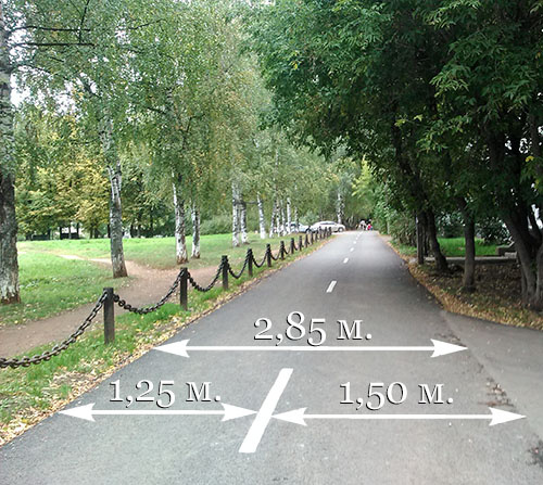 Забавно еще и то, что разметка нанесена «от балды». Даже не по центру. Одна сторона получилась 1,25 метра, вторая 1,5 метра. Не поленился – замерял. Плюс, где-то прерывистая линия, а где-то почти сплошная, почему почти, да потому что длина линии достигает до пяти метров. Думаю если бы краски было чуть больше, они бы двойную сплошную нарисовали и знак поставили бы, обгон запрещен. Ну а что, почему нет?