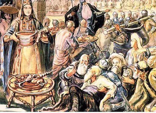 У каждого народа есть свои древние традиции, уходящие корнями в прошлое и находящие отражение в современности. Но для осетин обычаи предков, их предания и сказания - это не просто отражение далекого прошлого, а наследие и неотъемлемая часть нынешней культуры Нартский эпос Сказания о нартах, сложенные предками осетин – скифами, сарматами и аланами, донесли до наших дней яркое представление о быте и укладе жизни древнего народа – охоте, земледелии, скотоводстве, военной деятельности, празднествах и, конечно, традиционной осетинской кухне. В старину люди узнавали о них от певцов-сказителей под звуки 12-струнной арфы (осет. дыууадæстæнон фæндыр), которая является изобретением одного из героев нартского эпоса – Сырдона. По преданию, нарты жили в селении, разделенном на 3 квартала, которые населяли 3 рода – Ахсартагката, славившиеся своей храбростью, Алагата, известные мудростью, и Бората, черпавшие могущество из своего богатства. Самый почитаемый герой нартского эпоса Уастырджи, пок