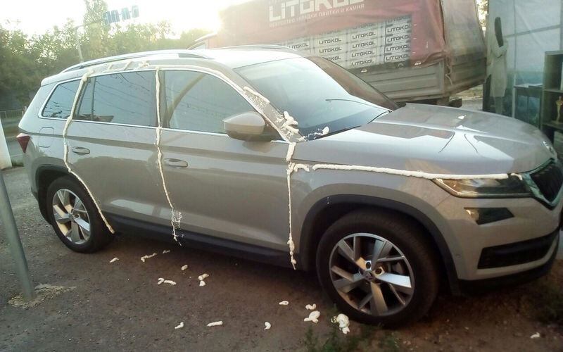 Хулиганы, как водится, сделали это под покровом ночи. Фотографии несчастной запененной машины появились в группе «Волгоград.Online»соцсети ВКонтакте. По сведению местных СМИ, произошло это ночью, а машина была припаркована возле жилого дома по проспекту Жукова. Неизвестные ночью заполнили монтажной пеной все щели и отверстия автомобиля. Кодиак совсем новенький и недешевый: цены на эту модель у дилеров стартуют с отметки 1 389 000 рублей. Чем насолил хозяин иномарки хулиганам, остается только гадать. Скорее всего, его так наказали за неправильную парковку или же он кому-то задолжал или не поделился, полагают пользователи соцсети. Есть и такие, кто ехидничает: «к зиме подготовили, чтоб не дуло», «надо своему бывшему так сделать», «видимо, несильно накосячил, иначе залили бы чем-то типа жидких гвоздей, а это так, предупреждение...». В любом случае, наказание это очень жесткое: вряд ли теперь получится отчистить пену, не повредив лакокрасочное покрытие.