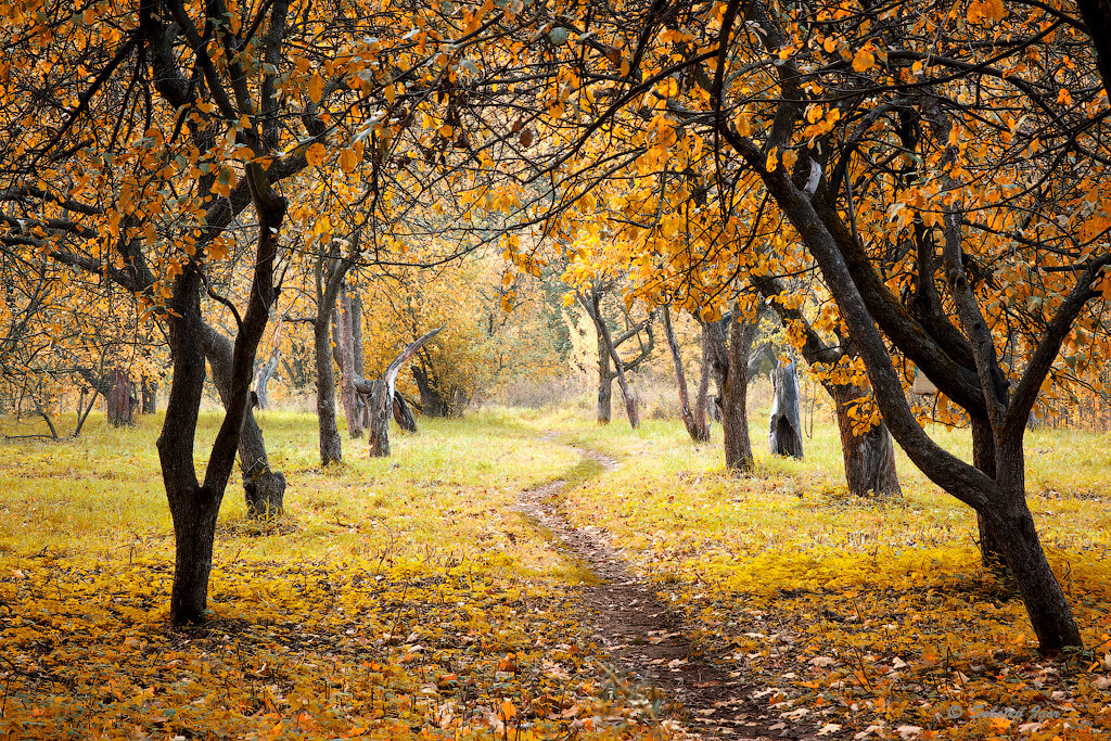 Красное вино... Пикантная закуска... Спелые яблоки - россыпью, под деревьями...