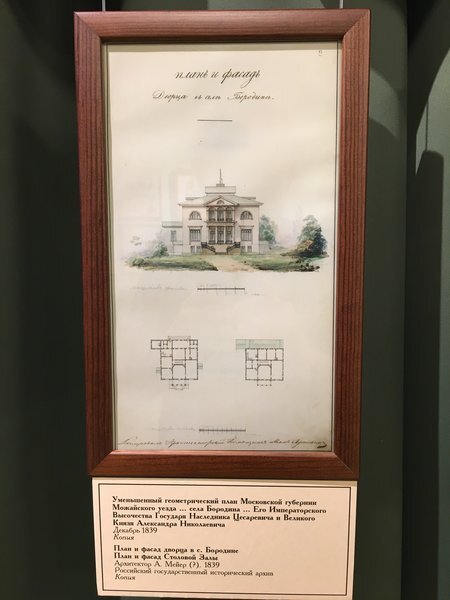 От Главного монумента идет прямая дорога до села Бородино. В нем находится Царский дворец. Давайте узнаем, что здесь есть интересного. Царский дворец построен по указу императора Николая I к 25-летию победы над Наполеоном. Ныне существующее здание воссоздано к 200-летию сражения. В нем находится экспозиция «Бородинское поле: вехи истории»: представлены древнейшие находки археологов, фотографии и экспонаты, связанные с разрушением и реставрацией Главного монумента, детали военного обмундирования и множество картин. В нескольких залах демонстрируется кинохроника разных годов: возведение памятников в 1912 году, документальные кадры времен Великой Отечественной войны и демонстрация всех трех ратных полей: фестивали исторической реконструкции на Куликовом и Бородинском полях, кадры сражения под Прохоровкой. Экспозиция интересная, посетить ее стоит. Особенно ради портретов Суворова и Кутузова: они прямо-таки давят своим безмолвием, хотя кажется что вот-вот заговорят. Однако полностью погрузи