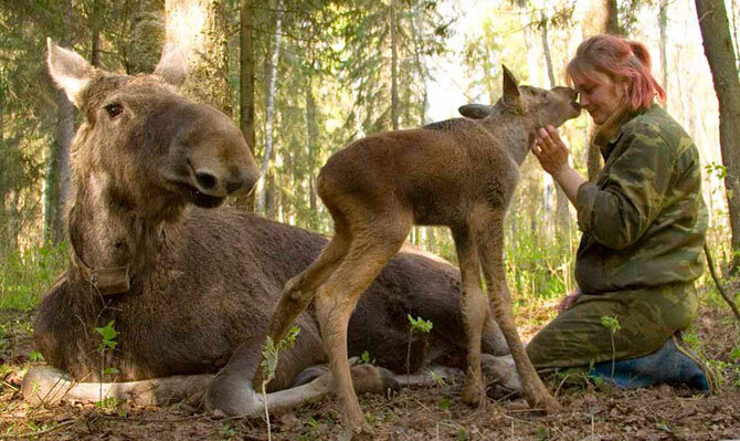 В дремучих лесах и просторах России обитают гордые сильные и красивые лоси. Что мы знаем о них? То, что они высокие, рога самцов большие и тяжелые, а самки нападают на любой движущийся объект, который приближается к их детенышу. Их повадки и привычки изучают небольшое количество людей, в основном охотники, которые ходят в леса чтобы воспользоваться "дарами" природы. Как часто бывает с русскими, которые могут жить в мире с окружающими зверушками, лоси не стали исключением и пошли на дружбу и приручение. В России есть как минимум две лосефермы: Сумароковская http://www.loseferma.ru и Костромская http://www.moose-farm.ru. Работники фермы выхаживают маленьких лосят, заботятся и доят взрослых лосих, приручая животных. При чем эти фермы специфичные. Животные не находятся в замкнутом пространстве как это обычно происходит с коровами и поросятами. Лоси имеют доступ к лесам, рекам и болотам. Но прирученные людьми приходят на дойку, подкормку и отдых на ферму. Ферма и болота - места, где в лет