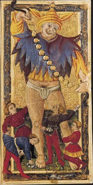 По дорожке шел тонкого сложения невысокий человек в обычном на первый взгляд костюме. Вот только штаны ему были заметно великоваты: сильно морщились спереди и почти волочились по полу сзади; только сюртук так туго обтягивал тощий торс, что, казалось, сейчас лопнет, и пуговицы, которыми он был усеян, градом посыпятся на пол; только новомодный цилиндр на голове человечка позвякивал шутовскими бубенцами, а небольшой жезл, увенчанным петушиной головой, он нес на манер трости, повесив на сгиб локтя. Человек шел, поглядывая по сторонам, иногда приподнимая над головой цилиндр, приветствуя знакомых, которые старались на глаза ему не попадаться.